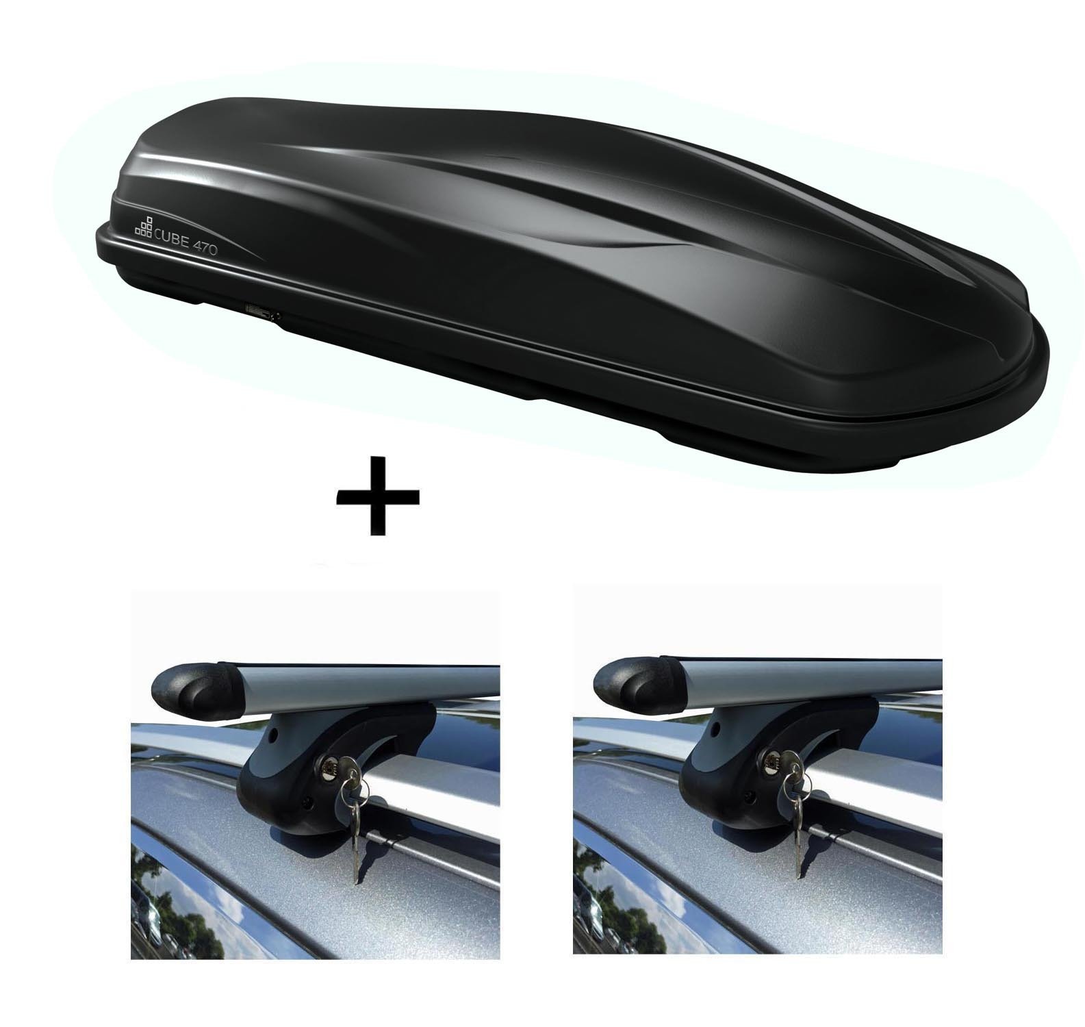 Coffre de toit/coffre à bagages CUBE470 + barres de toit Rio 135 compatibles avec Citroen C4 Grand Picasso 06-13