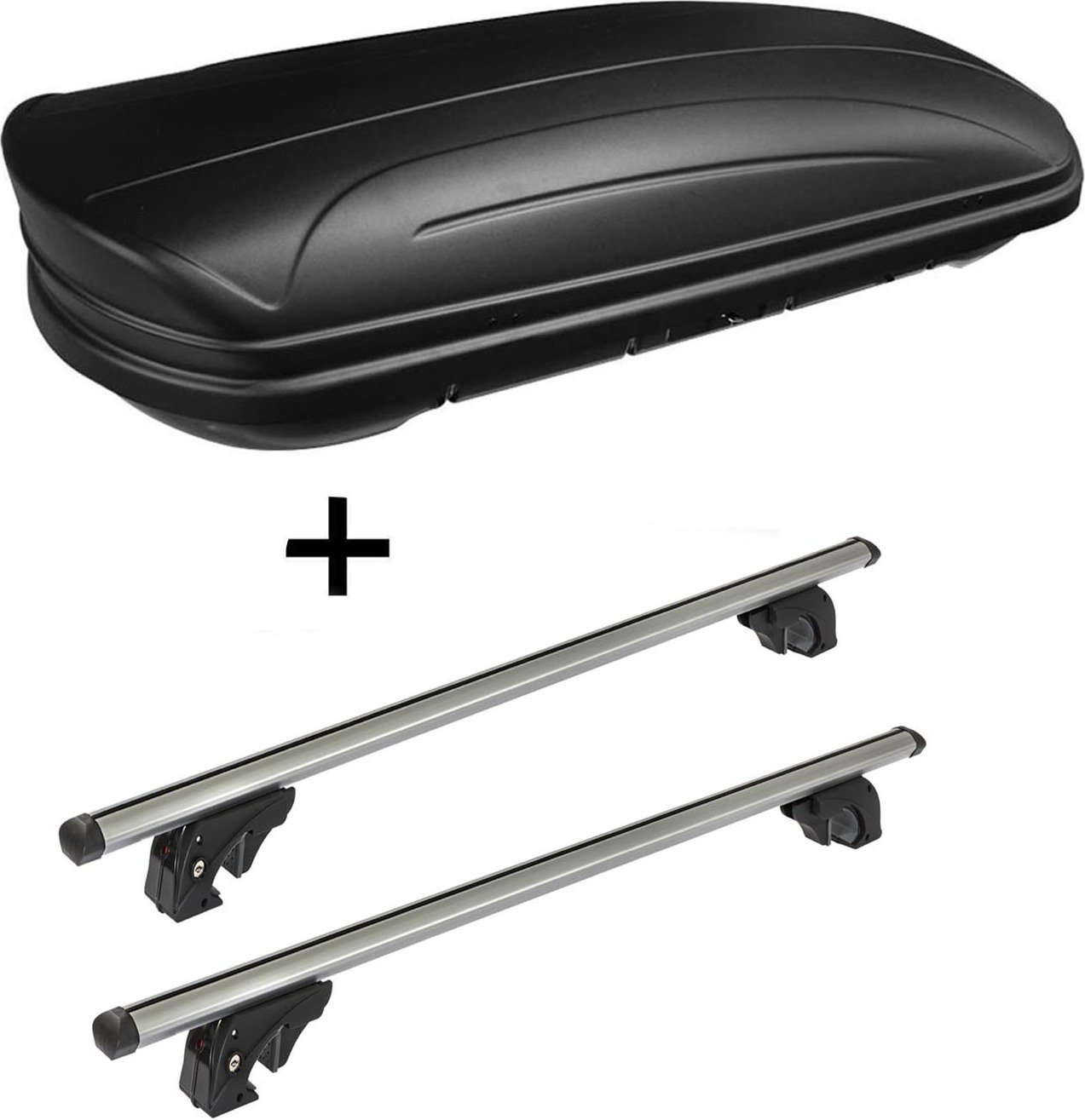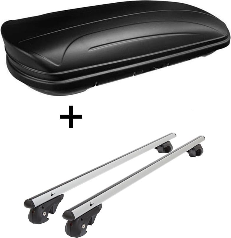 Coffre de toit JUEASY300 300Ltr noir + barres de toit Rio 135 compatibles avec Citroen C4 Grand Picasso 06-'13