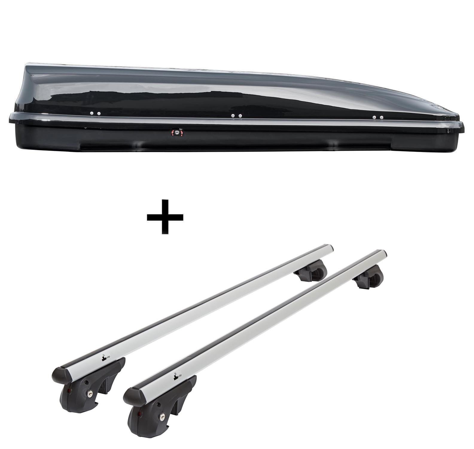 Coffre de toit noir VDP JUXT 500 grand coffre de toit 500 litres verrouillable + barres de toit en aluminium compatibles avec Citroen C4 Grand Picasso UA 06-13