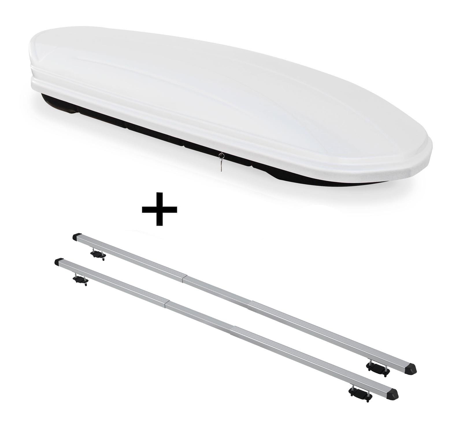 Coffre de toit blanc VDPMAA320W 320 litres verrouillable + barres de toit en aluminium compatibles avec Citroen C4 Grand Picasso UA 06-13 serrure