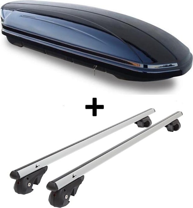 Coffre de toit VDPFL460 460Ltr noir brillant + barres de toit en aluminium VDP004XL compatibles avec Citroen C4 Grand Picasso UA 06-13