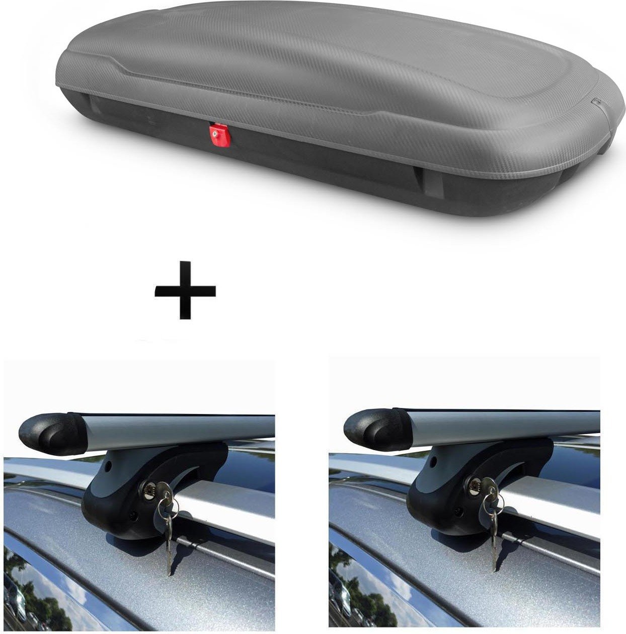 Coffre de toit VDPCA480 480Ltr carbonlook + barres de toit en aluminium VDP004XL compatibles avec Citroen C4 Grand Picasso UA 06-13