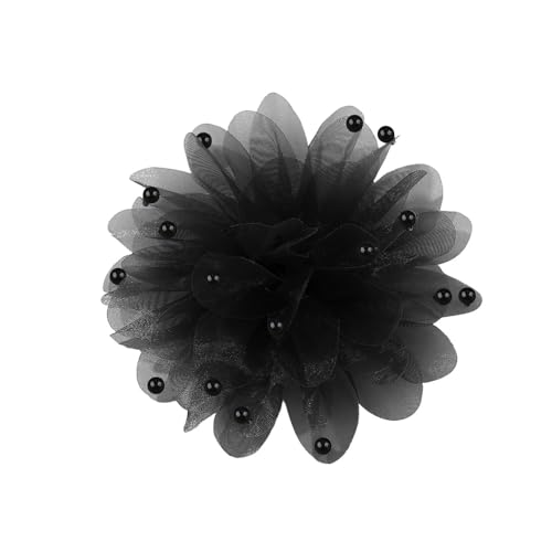 13cm Broche Barrette 2 En 1 Pour Femmes - Fleur Pivoine Camélia En Maille à Perles De Nacre - Accessoire Élégant Pour Mariage Anniversaire Cérémonie - Pour Veste Robe Ou Cheveux (Noir)