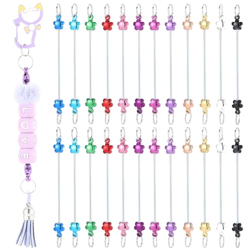 SUNNYCLUE 1 boîte 24 pièces 12 couleurs Barrette pour porte-clés à enfiler Barrette pour porte-clés Charms en vrac 89 mm de long Acier inoxydable Jolie fleur avec anneaux Blancs