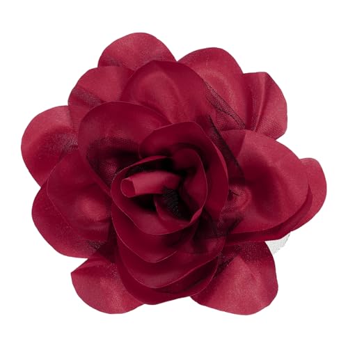 QUARKZMAN Rose Flower Brooch, 5.5 Inch Broche En Satin créé À Main Épingle De Revers Fleur Broche Pin Élégant Barrette À Fleurs Pour Femmes Mariage Soirée Danse Banquet Robe, Wine Red