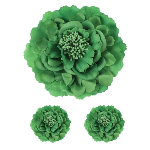 QUARKZMAN 3 Pcs Fleurs De Pivoine Barrette À Cheveux, 4.7 Inch Fleur Artificielle En Tissu Pour Femmes Épingles À Cheveux Corsage DIY Artisanat Vêtements Mariage Anniversaire Fête, Vert