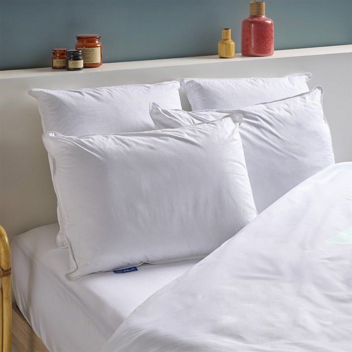 Bleu Câlin Lot de 2 Oreillers Rectangulaires, Barrettes Mousse à mémoire de Forme et Fibre Polyester, Coton, Blanc, 50 x 70 cm