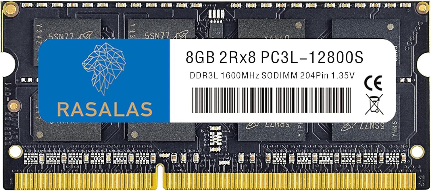 Rasalas Lot de 1 Barrettes de mémoire RAM DDR3 1600 MHz PC3L-12800 8 Go DDR3 sans ECC 1,35 V CL11 2Rx8 Double Rang SODIMM pour Ordinateur Portable