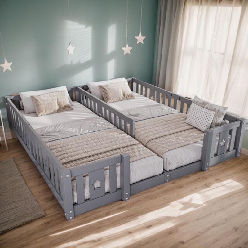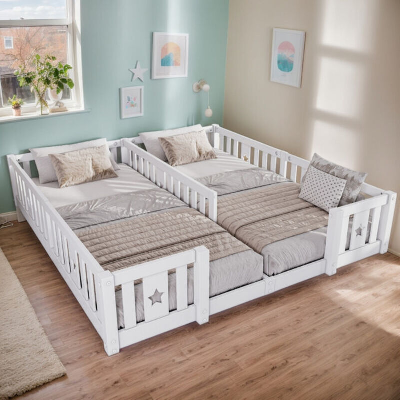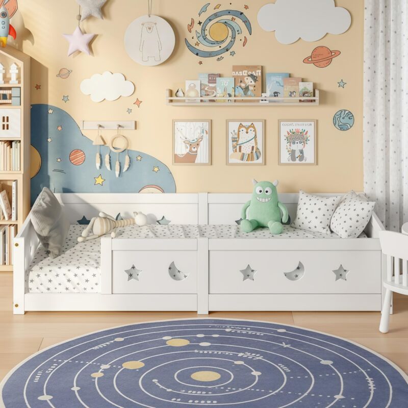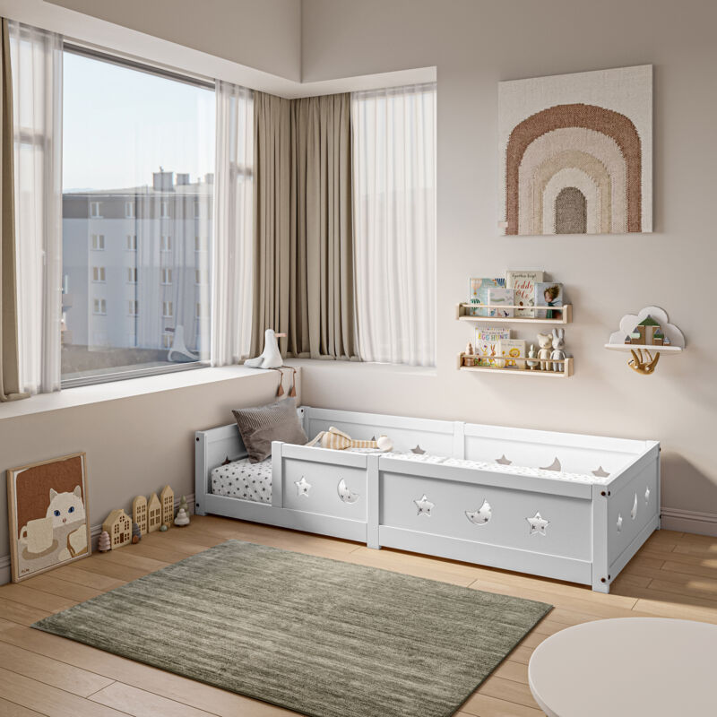 Lit Superposé Enfant 90x200cm avec Toboggan et Barrière Anti Chute Cadre de Lit en Bois Massif Blanc