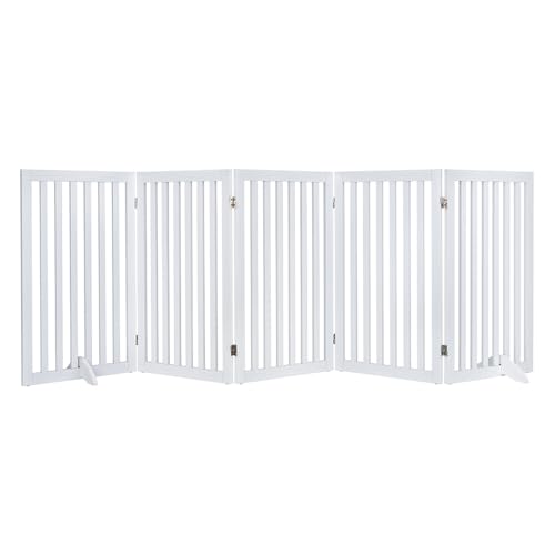 PawHut Barrière de sécurité pour Chien barrière de Protection à 4 Panneaux Pliante clôture pour Animal Domestique en Bois - dim. 280 x 44 x 70 cm Blanc