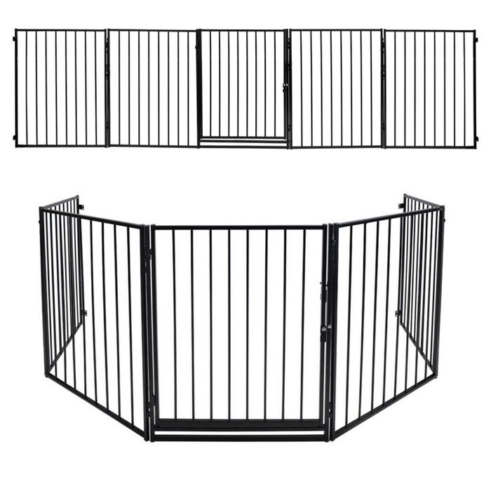 Sonnewelt Barrière de sécurité Enfant de protection de cheminée avec porte de 304 cm - En métal - 5 pièces - Pour enfants et animaux domestiques - Noir