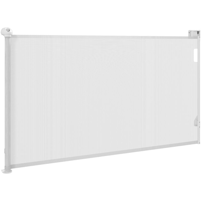 Pawhut - Barrière de sécurité chien rétractable 0-140 cm H.86 cm verrouillage auto alu pvc blanc