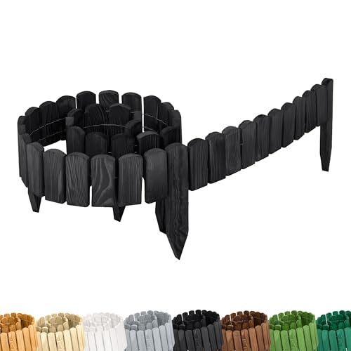 Garronda Clôture Décorative en Bois Naturel - Flexible et Résistante - Barrière Bois pour Délimitation - Clôtures Décoratives - 200 cm - GD-0106 (Graphite, Hauteur: 8 cm)
