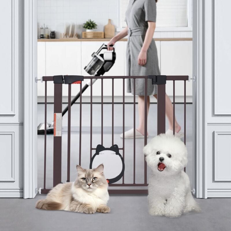 Barrière de sécurité pour chien, porte de sécurité en bois avec chatière, porte de séparation pour animaux domestiques, barrière d'escalier, barrière