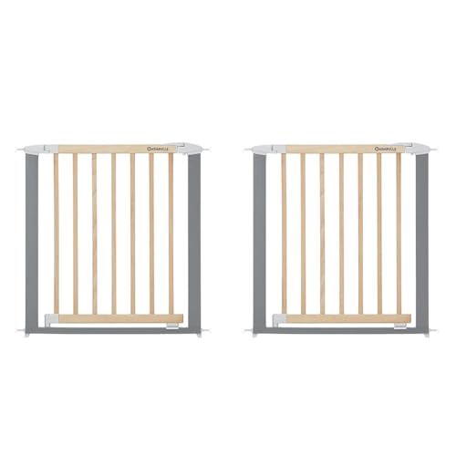 Badabulle Barrière de Sécurité Enfant Safe&Lock - Barrière sans Perçage ou Fixation Vis, Barrière Extensible (73 à 81,5 cm) - Ouverture Facile, Bois Métal (Lot de 2)