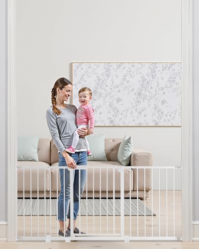 VOUNOT Barrière de Sécurité Extensible 75-84cm Fermeture Auto et Magnétique Sans Perçage Barrière à Pression Pour Bébé et Chiens pour escaliers et porte Hauteur 74cm Métal Blanc