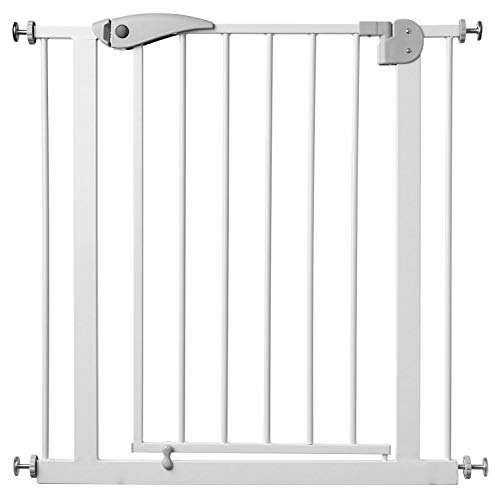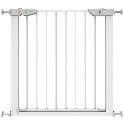 VOUNOT® Barrière de Sécurité Extensible 75-84cm Fermeture Auto et Magnétique sans Perçage Barrière à Pression pour Bébé et Chiens pour escaliers et Porte Hauteur 74cm Métal Blanc