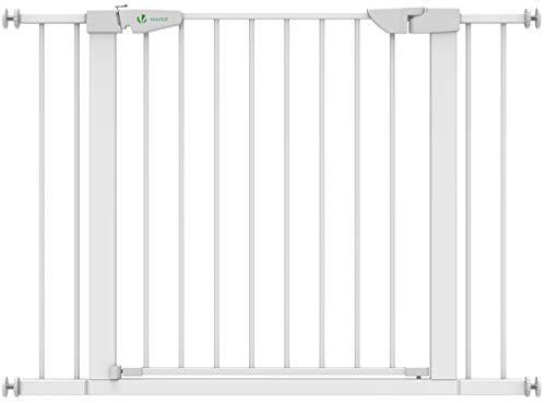 VOUNOT® Barrière de Sécurité Extensible 88-96cm Fermeture Auto et Magnétique sans Perçage Barrière à Pression pour Bébé et Chiens pour escaliers et Porte Hauteur 74cm Métal Blanc