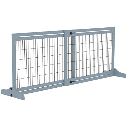 PawHut Barrière de sécurité pour Chien Extensible barrière de sécurité autoportante pour Animaux Longueur réglable 104-180 x 36 x 69 cm pin Bleu-Gris