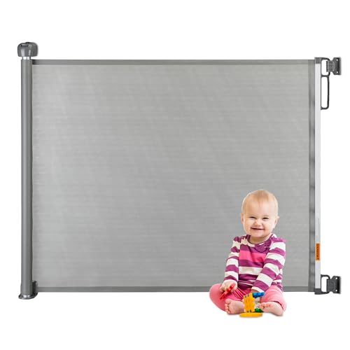 VEVOR Barrière de Sécurité Extensible, Clôture en Maille 185 cm de Large et 79,5 cm de Haut, Barrière Rétractable pour Animaux de Compagnie, avec Verrou de Sécurité, pour Couloir Escalier, Gris