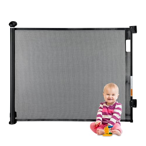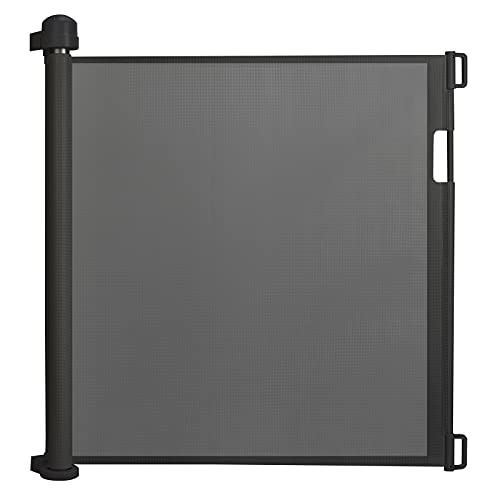 VEVOR Barrière de Sécurité Extensible Jusqu’à 140 cm Hauteur 87 cm, Barrière Rétractable pour Animaux de Compagnie, Clôtures en Mailles, pour Chiens Couloir Escalier Porte Salle de Jeux, Noir