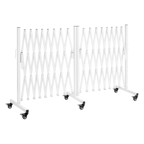 VEVOR Barrière de Sécurité Extensible Double Barrière Accordéon Rotative 0-180° Clôture Pliable 5,48 m pour Terrasse, Jardin, Escaliers, Mobile, roulettes à Verrou, Longueur Rétractée 62 cm, Blanc
