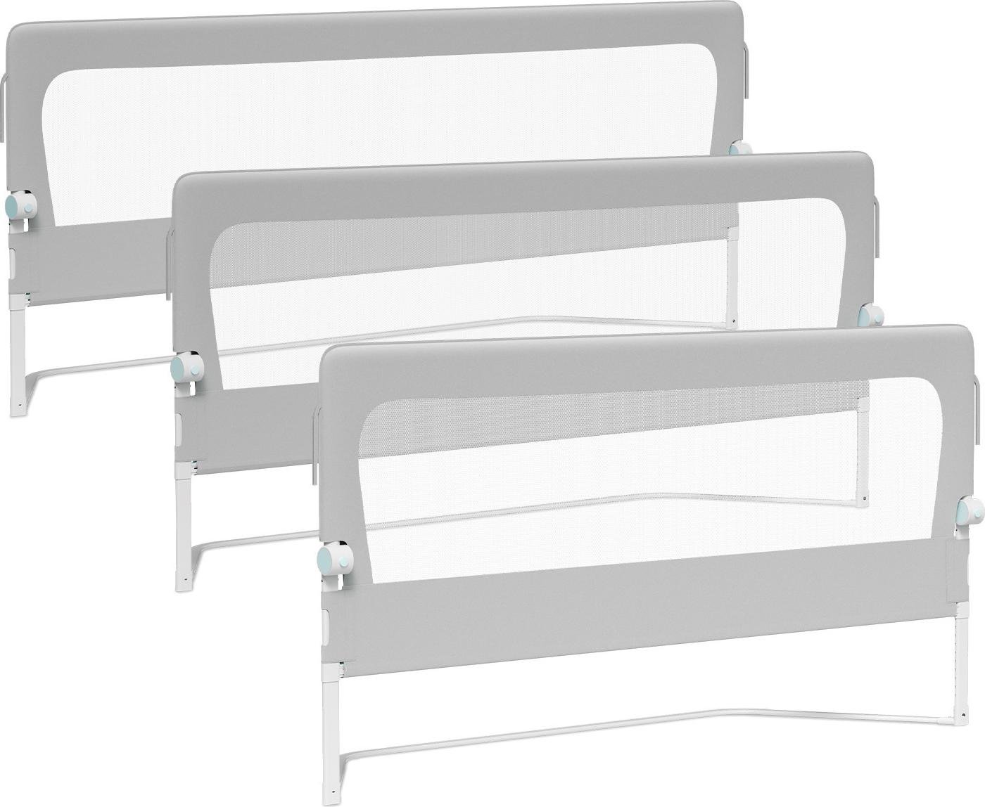 Tubiaz 1x180CM+2x200CM Barrière de lit pour bébé, Barrière de lit Enfant Protection Contre Les Chutes, Réglable en Hauteur, Barrière de lit avec Filet aéré, Facile à Monter, Gris