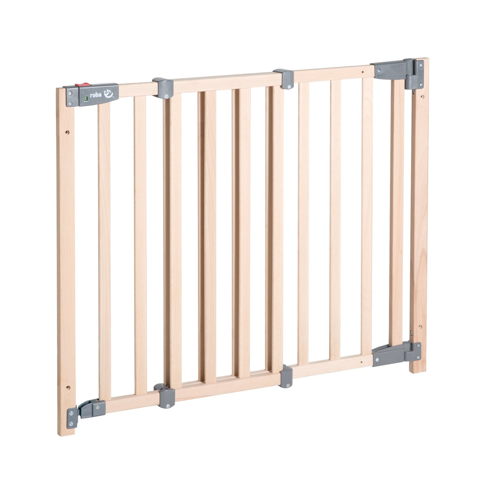 Barrière de Sécurité Bébé pour Escalier Safety Up - ROBA - Largeur de 93.5 à 120.5 cm - Bois Naturel