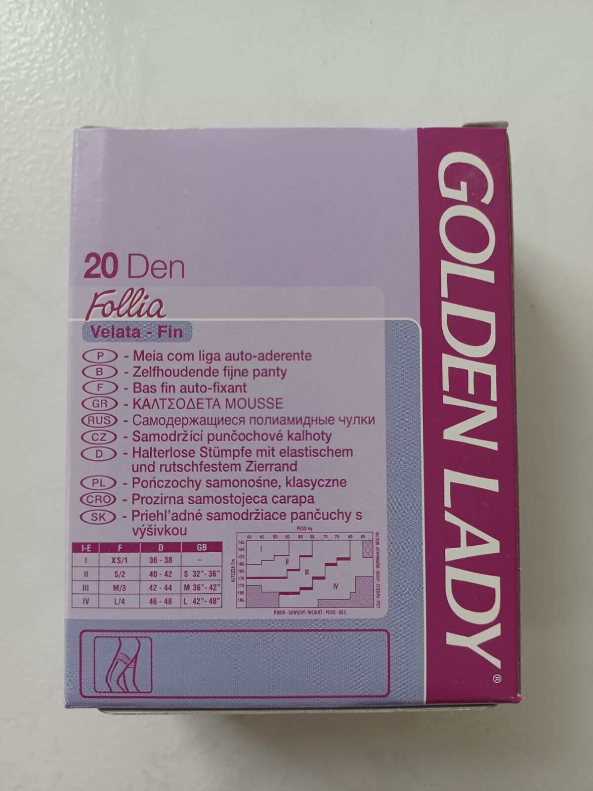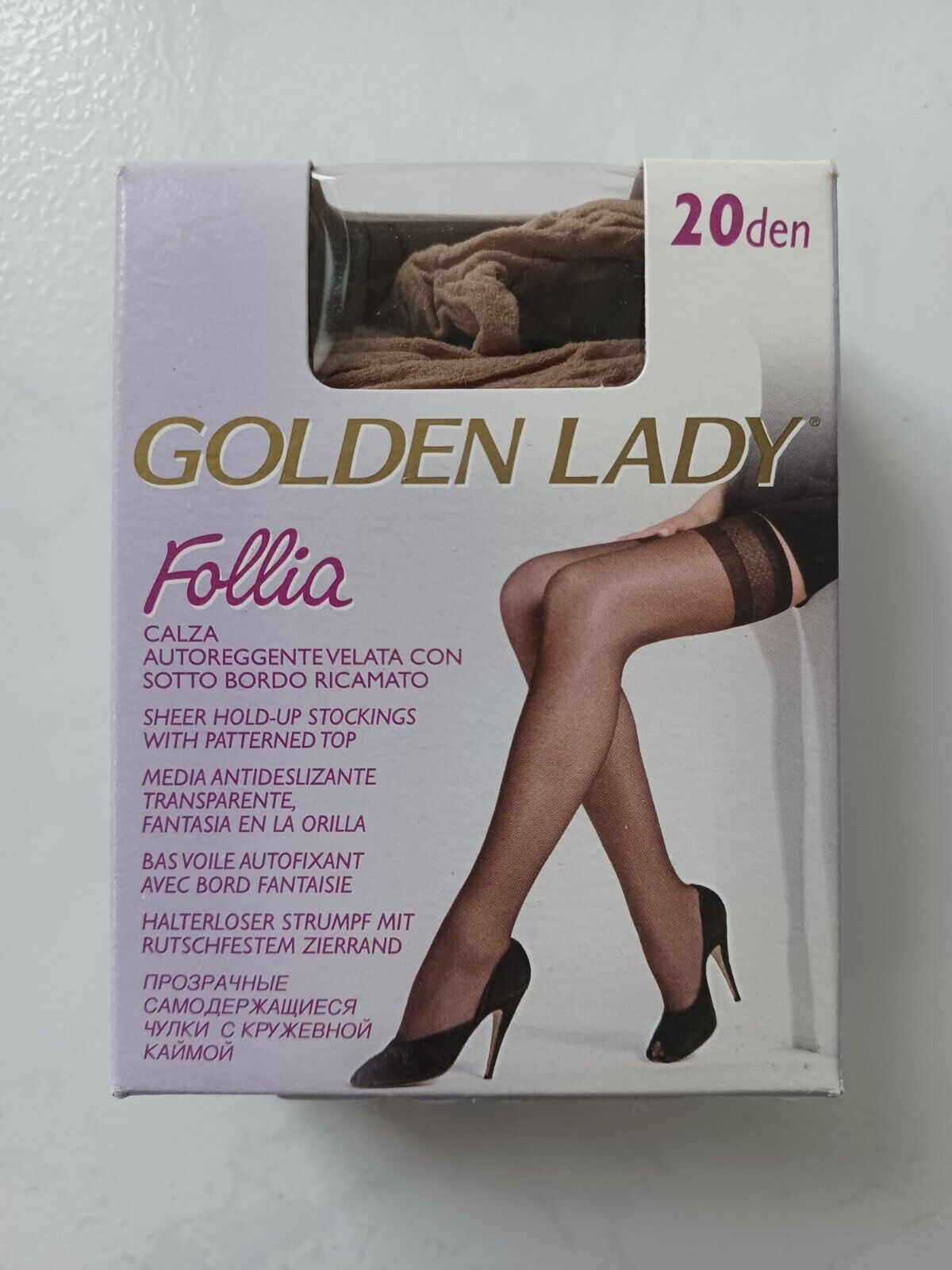 GOLDEN LADY BAS VOILE AUTO-FIXANT FOLLIA 20 DEN TAILLE UNIQUE COULEUR CAMOSCIO