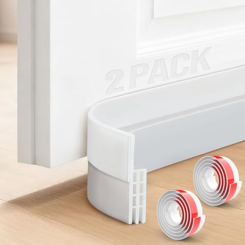 2 Pièces Boudin de Porte Isolant en TPE Souple, Bas de Porte Anti Courant D'air, Dessous de Porte Autocollant, pour Bloquer le Bruit et la Poussière (100 x 5 cm, Blanc)