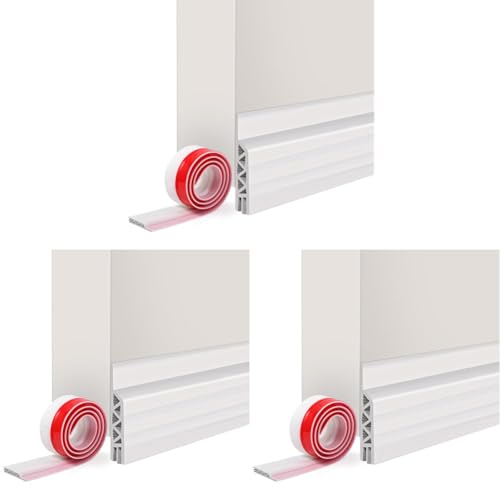 Vinabo Boudin Isolant, 100cm x 5cm - Bas de Porte Anti-Courant d'Air & Étanchéité, Adhésif - Isolation et Protection Sonore pour Porte d'Entree (Blanc) (Lot de 3)