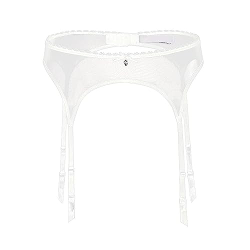 RABNZHDEO Porte-Jarretelles en Dentelle pour Femmes Ensemble De Porte-Jarretelles Sexy en Maille avec 4 Bretelles pour Bas Cuisses(White-01,M)