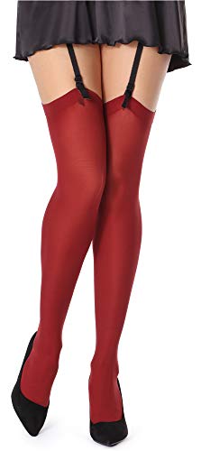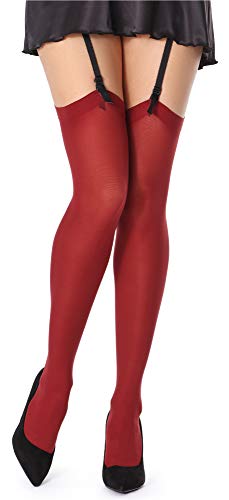 Bellivalini Bas Pour Porte-Jarretelles en Microfibre Femme 40 DEN BLVFI1006 (Bourgogne, XS/S (Taille du Fabricant: 1/2))