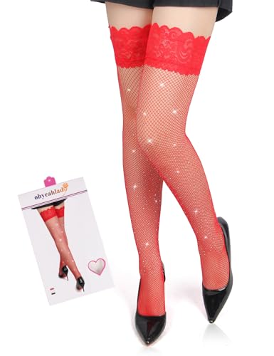 ohyeahlady Bas Noel Résille Strass Autofixant Scintillant Grande Taille Bas Pailleté pour Porte-jarretelles Femme Tenu Mere Noel Collant Pailleté Strass (Rouge,XS-M)