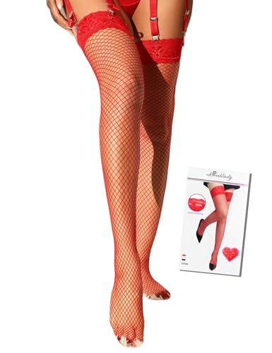 ohyeahlady Bas pour Porte-jarretelles Femme Sexy Grande Taille Bas Résille Autofixant Collant Porte Jarretelle Dentelle Tenue Hot Lingerie Sexy Dentelle Silicone Antidérapant Noir Rouge,XS-M