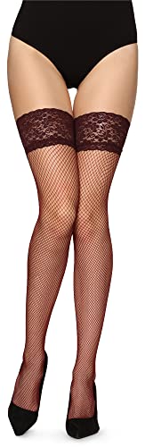 Merry Style Bas Autofixant Résille Dentelle Sous-vêtements Femme MSSS003 (Bordeaux, 3/4 (40-44))