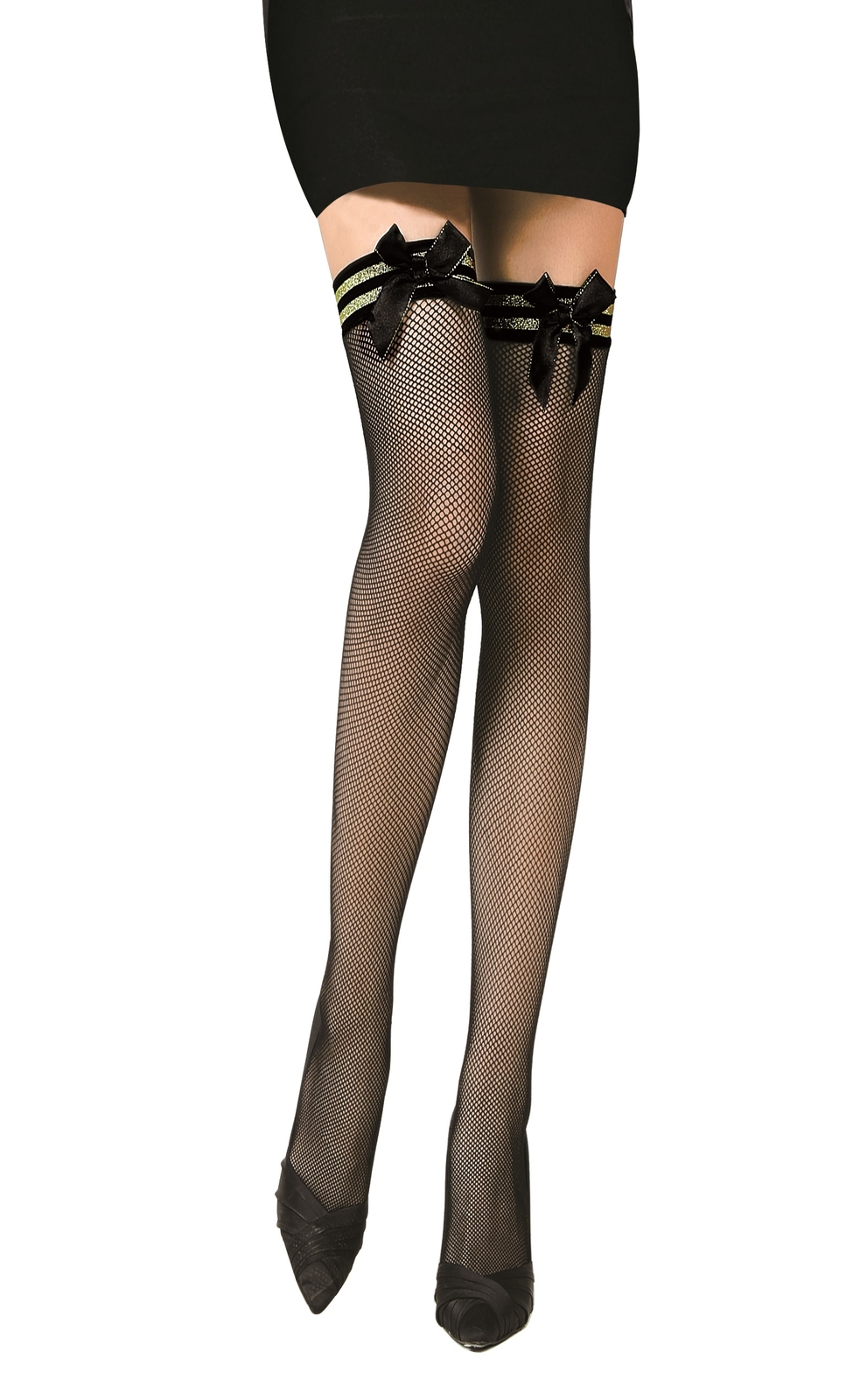Bas Résille Jarretière Noeuds Scintillant Dorée Auto-Fixant Lingerie NEUF SEXY