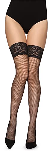 Merry Style Bas Autofixant Résille Dentelle Sous-vêtements Femme MSSS003 (Nero, 1/2 (32-38))