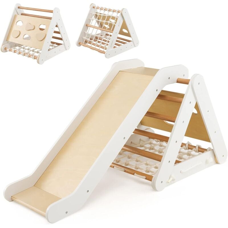 Costway - Triangle d'Escalade en Bois pour Bebe 1+ An/4 en 1 Échelle et Planche d'Escalade avec Filet Charge 50KG