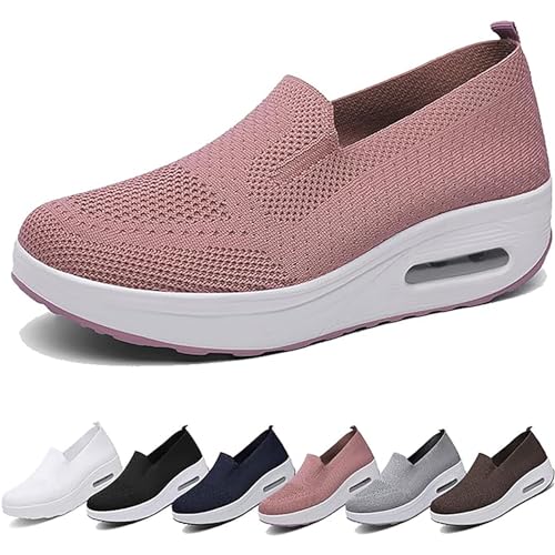 GYCF Baskets Orthopédiques pour Femmes, Chaussures De Marche À Enfiler À Coussin d'air,Basket en Maille à Plateforme à Coussin d'air avec Soutien de la Voûte,Rose,39EU