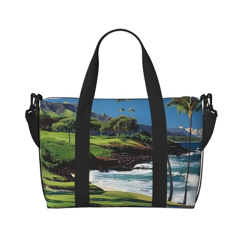 Sac de sport de voyage imprimé basket-ball d'intérieur pour homme et femme Sac fourre-tout imperméable avec bandoulière, Terrain de golf hawaïen, Taille unique, Sac de voyage