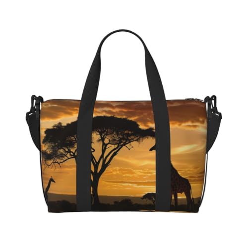 Sac de sport de voyage imprimé basket-ball d'intérieur pour homme et femme Sac fourre-tout imperméable avec bandoulière, Girafe et arbres au crépuscule en Afrique, Taille unique, Sac de voyage