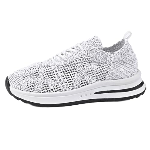 Basket Femme Blanche en Dentelle Confortable Chaussures Sportives Chic pour Été avec Plates et Toile Respirante (Blanc, Adulte, Femme, 37, Numérique, Système Taille Chaussures EU, Moyen)