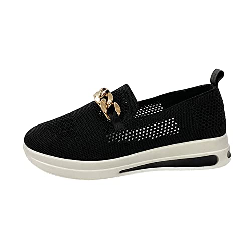Chaussures Femme Confort Chic Basket Blanche Mesdames Fashion Solid Color Mesh Chain Baskets Décontractées À Semelles Épaisses Décoratives Fitness Jogging Walking Sneakers Baskets Femmes (Black,42)