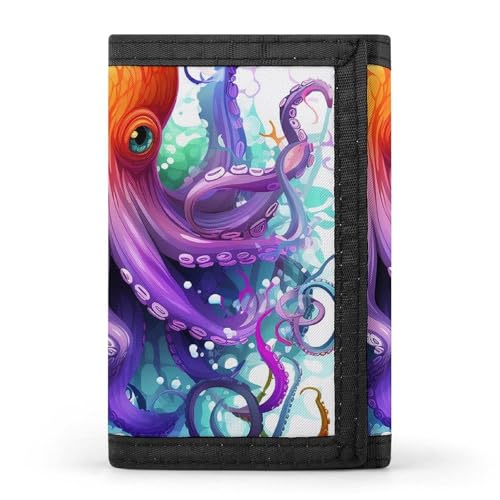 LYHVSFJW Portefeuille de basket-ball à trois volets avec 8 emplacements pour cartes, poche fine à fermeture éclair pour pièces de monnaie, portefeuille divisé pour homme et femme, Pieuvre coloré.,