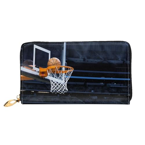CKGODGF Portefeuille en cuir imprimé sur le terrain de basket-ball pour femme avec fermeture éclair et pochettes de voyage