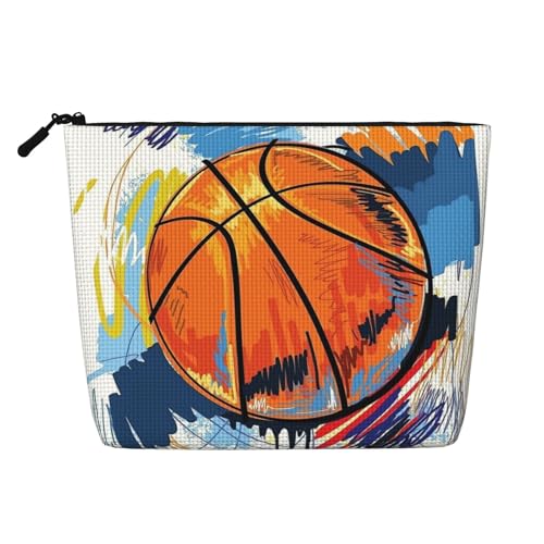 FHESDCW Trousse de maquillage cool sur le thème du basket-ball pour femme en cuir synthétique imperméable avec fermeture éclair - Organiseur de maquillage portable de voyage