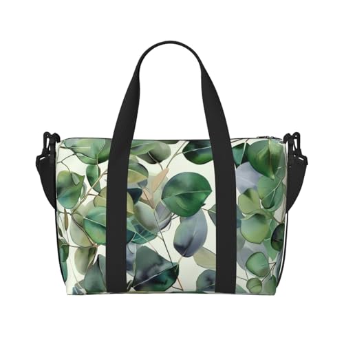 Sac de sport de voyage imprimé basket-ball d'intérieur pour homme et femme Sac fourre-tout imperméable avec bandoulière, Feuilles d'eucalyptus vertes, Taille unique, Sac de voyage