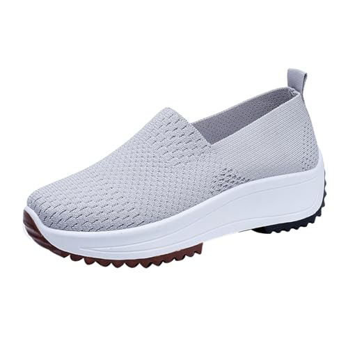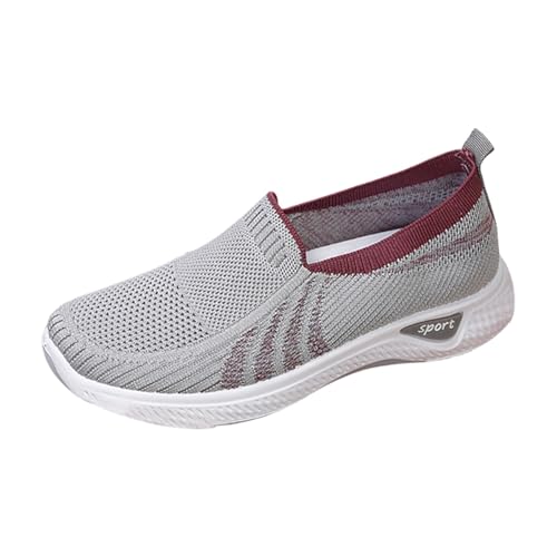 Générique Chaussures Orthopédiques Femme Chaussure de Marche Été Femmes Chaussures Sport Fond Plat Léger sans Lacet Couleur Unie Mouche Tissé Respirant Et Confortable Basket Femme (Grey,42)