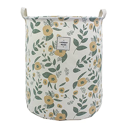 Mziart Collapsible Laundry Basket, Floral Printing Large Laundry Hamper for Baby Girls Kids Toys Clothes Organizer Foldable Storage Bin Waterproof Canvas Nursery Storage Basket with Handles (Green)